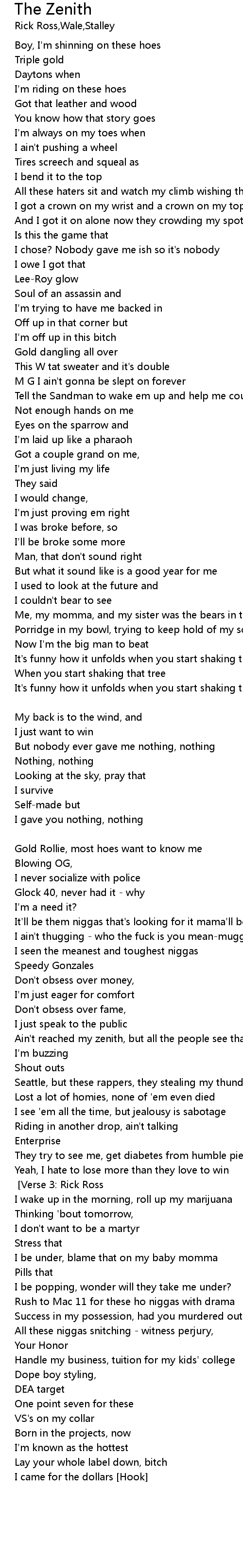 | Ain't reached my zenith, but all the people see that | |