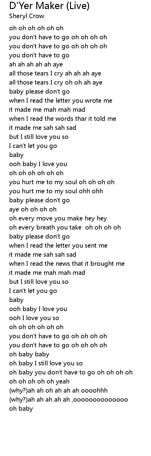 oh baby you don't have to go oh oh oh oh |