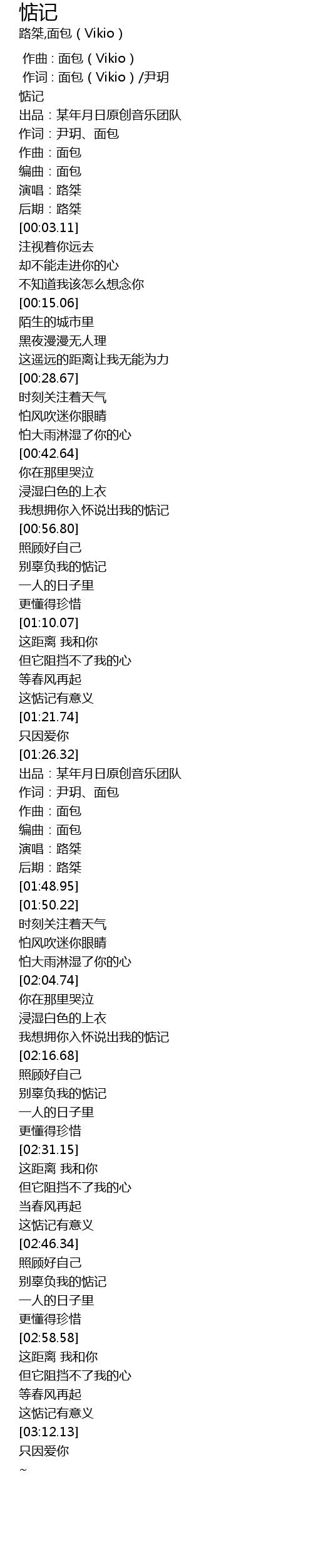 | [00:00.000] | 作曲 : 面包(Vikio) |