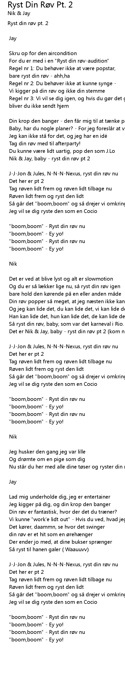 | Og du er s l kker lige nu, s ryst din r v igen | |