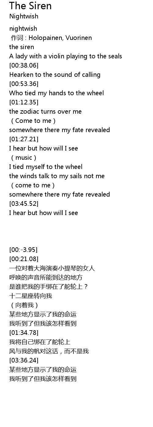 | [00:00.00] | zuò cí : Holopainen, Vuorinen |