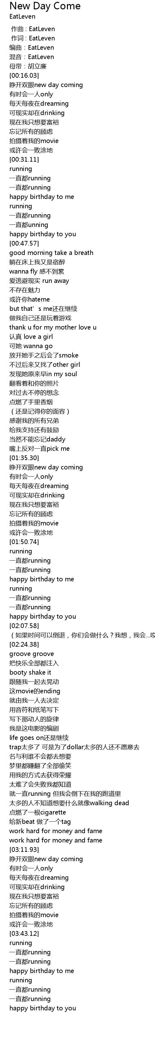 | [00:16.39] | 睁开双眼new day coming |