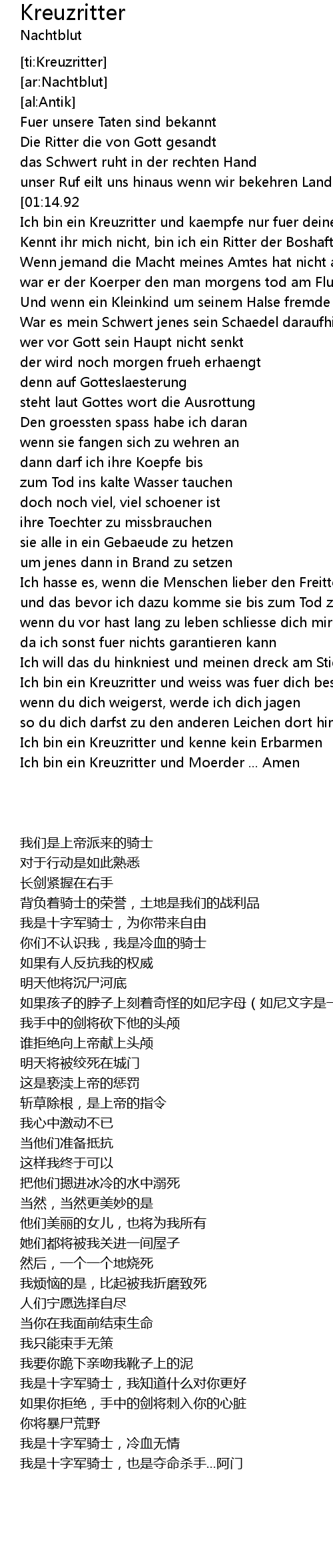| [03:57.67] | Ich bin ein Kreuzritter und Moerder ... Amen |