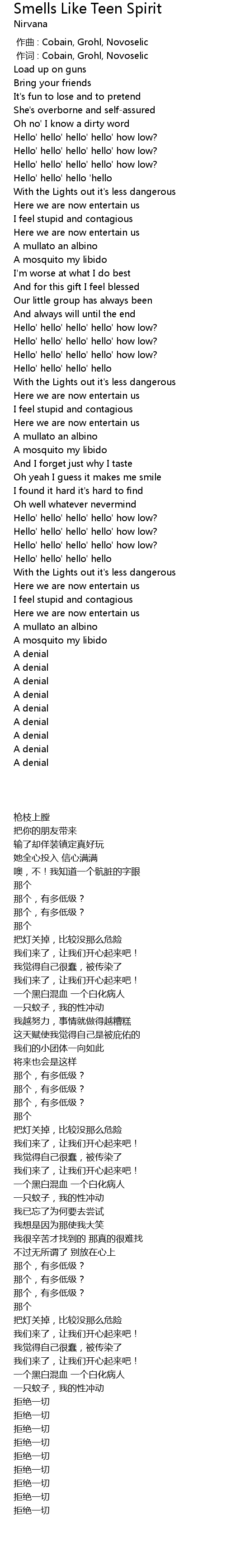 | [00:01.00] | 作词 : Cobain, Grohl, Novoselic |