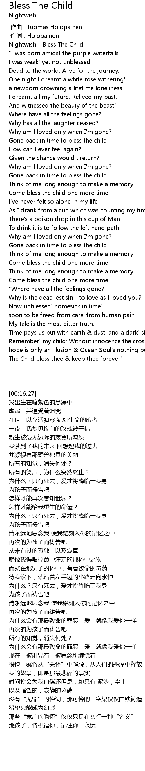 | [00:16.27] | Nightwish - Bless The Child |