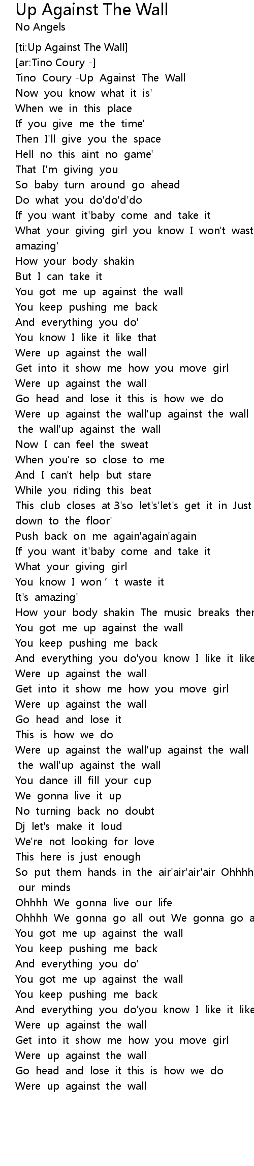 | [01:52.69] | Were up against the wall' up against the wall Were up against the wall' up against the wall |