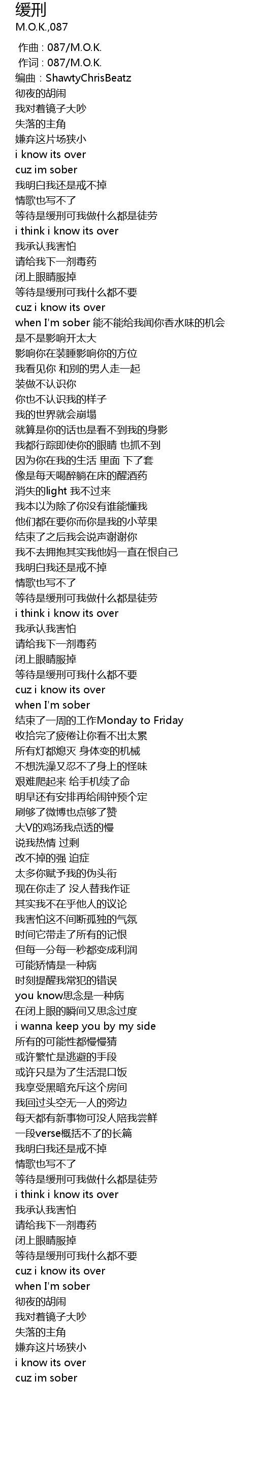 | [00:00.000] | zuò qǔ : 087 M. O. K. |