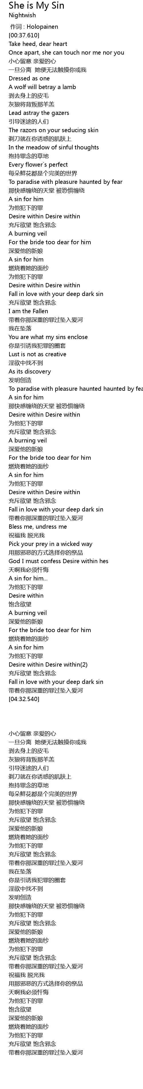 | [04:32.540] | 带着你那深重的罪过坠入爱河 |