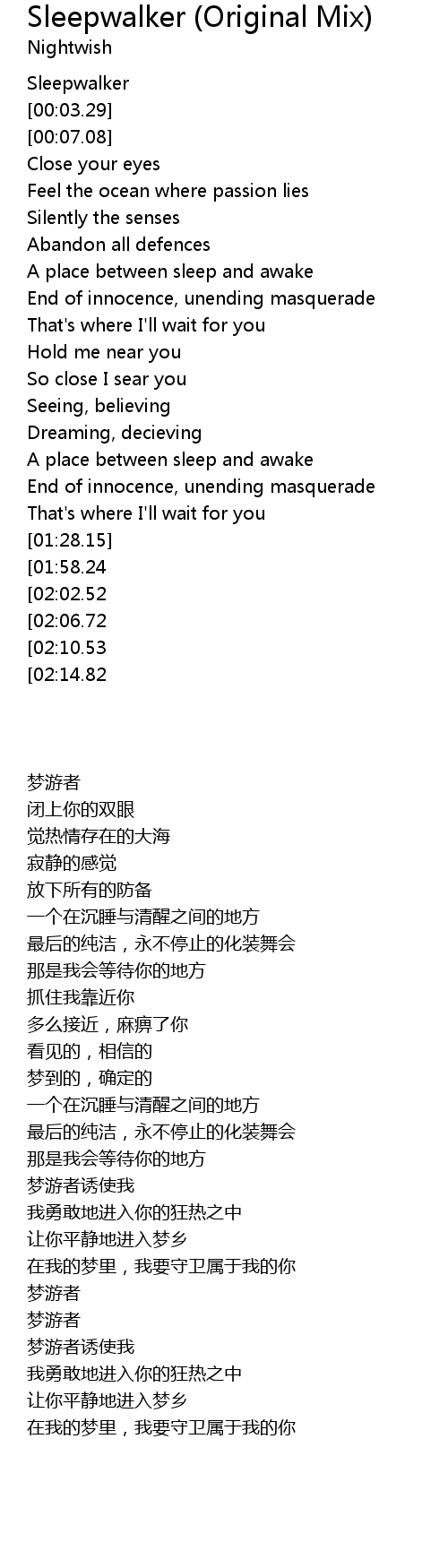 [02:31.06][01:58.24] Sleepwalker seducing me