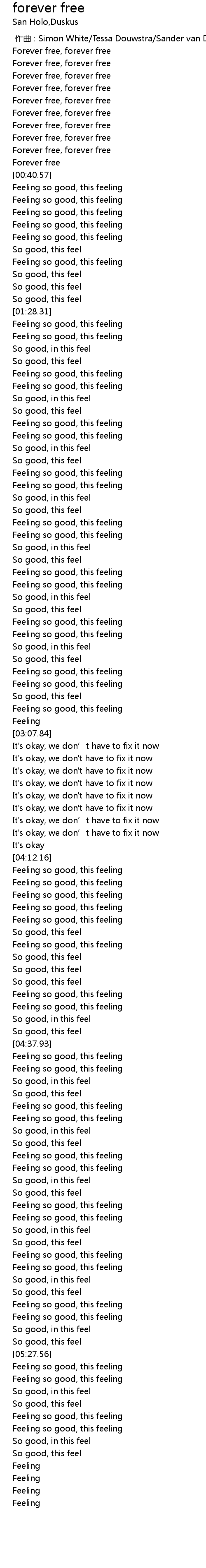 | [05:16.44] | So good, in this feel |