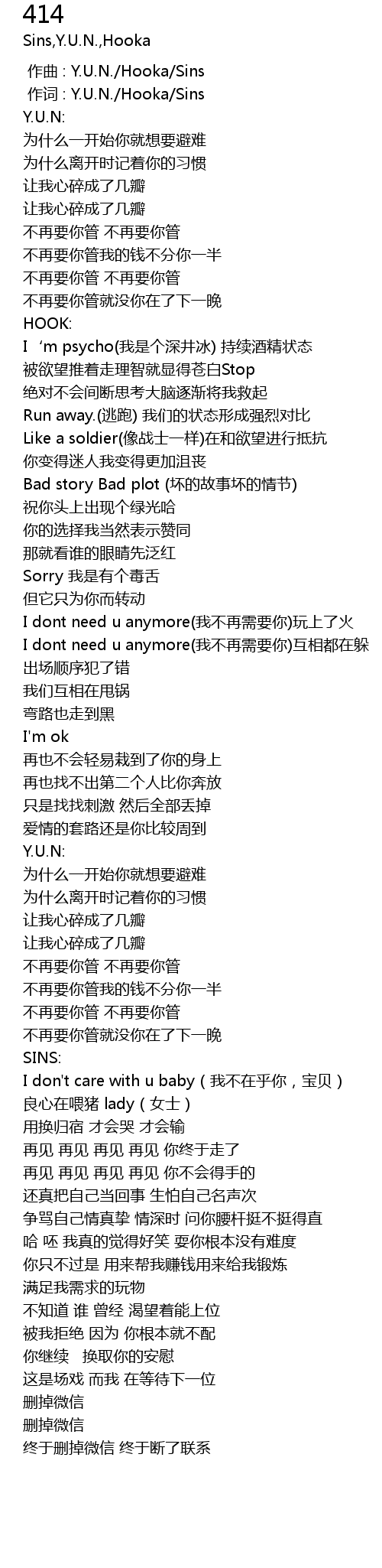 | [00:01.000] | 作词 : Y.U.N./Hooka/Sins |