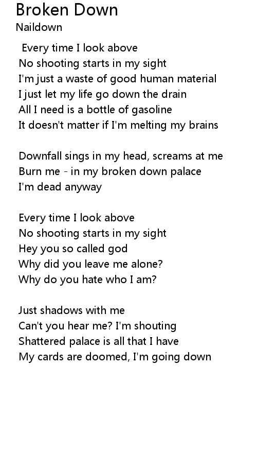 Burn me - in my broken down palace |