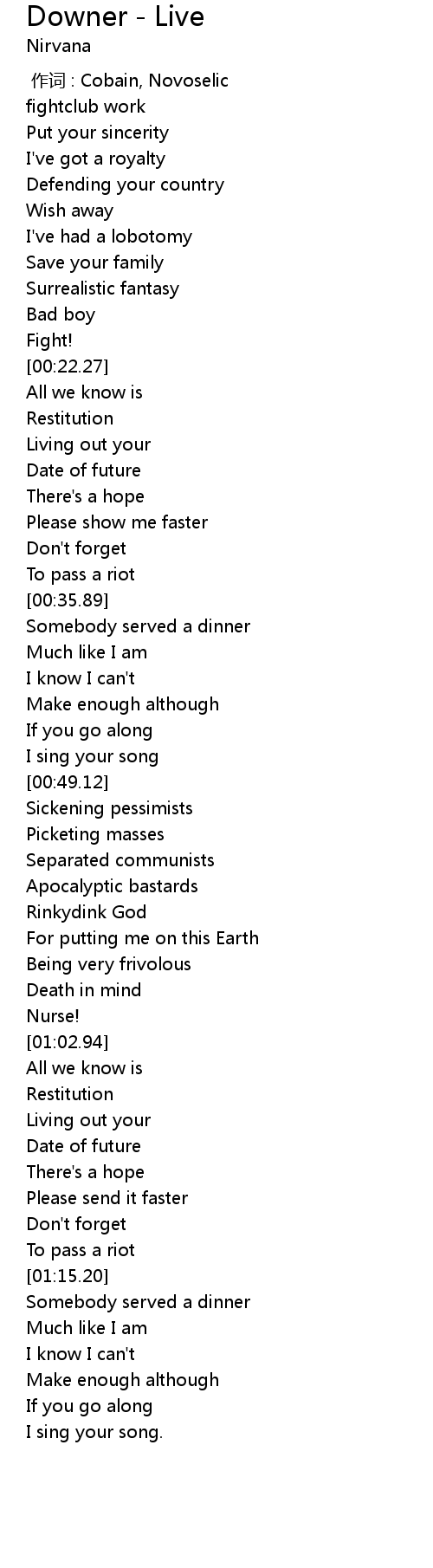 | [00:00.00] | zuò cí : Cobain, Novoselic |
