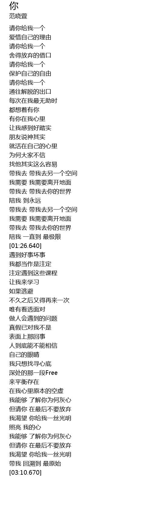 | [03:01.830] | 我渴望 你给我一丝光明 |