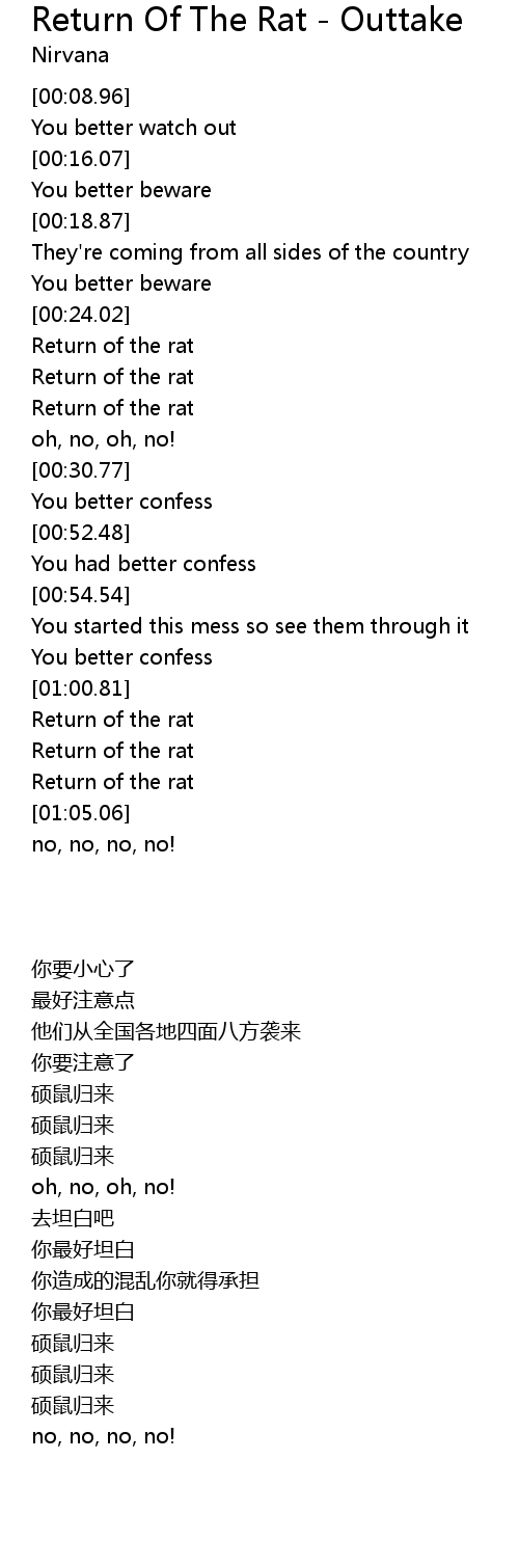 | [01:01.44] | Return of the rat |