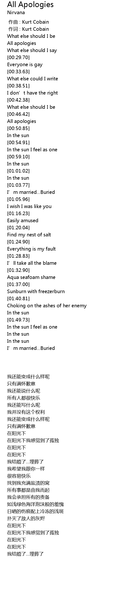 | [00:01.00] | zuò cí : Kurt Cobain |