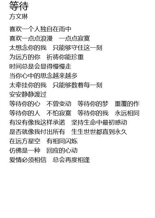 | 等待你的心 不曾变动 等待你的梦 重覆的作 | |