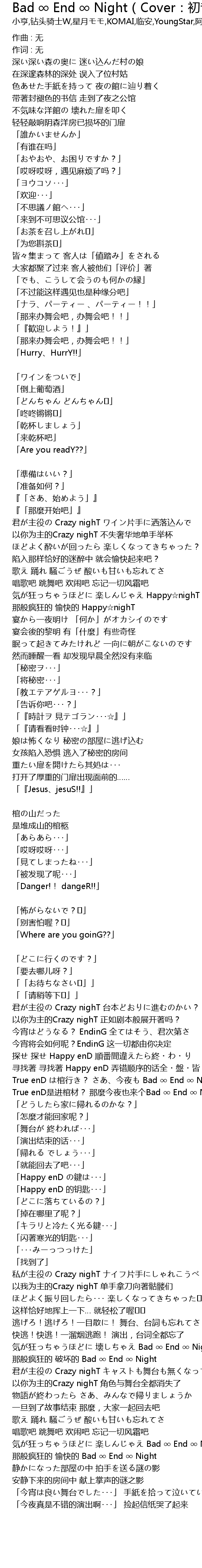 | True enD是进棺材? 那麼今夜也来个Bad ∞ End ∞ Night? | |
