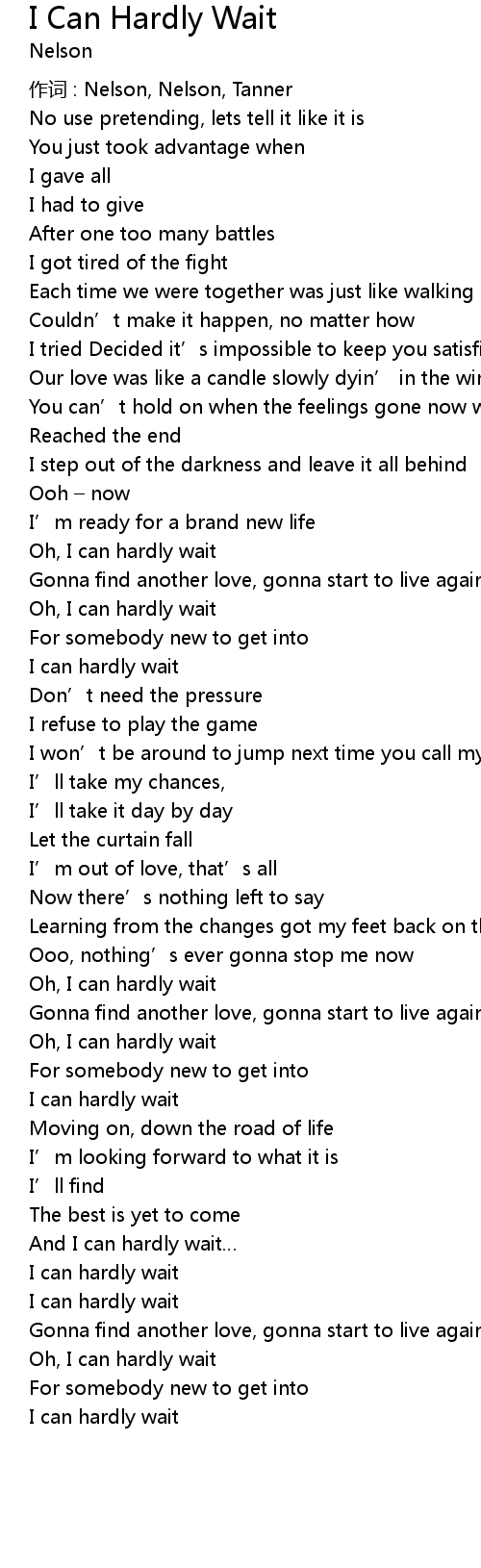 | Oh, I can hardly wait | |