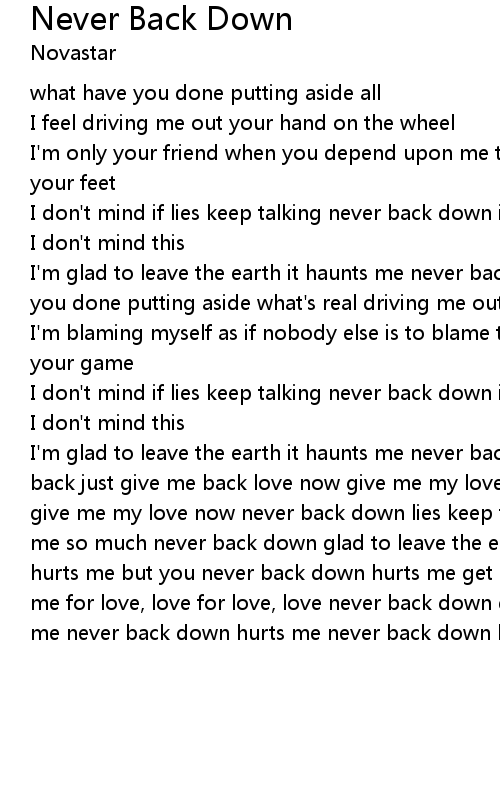 I'm glad to leave the earth it haunts me never back down never back down get it back just give me back love now give me my love now just give me back love now give me my love now never back down lies keep talking you never back down hurts me so much never back down glad to leave the earth haunts me never back down hurts me but you never back down hurts me get it by hurts me you get it by hurts me for love, love for love, love never back down glad to leave the earth haunts me never back down hurts me never back down hurts me just get it back |