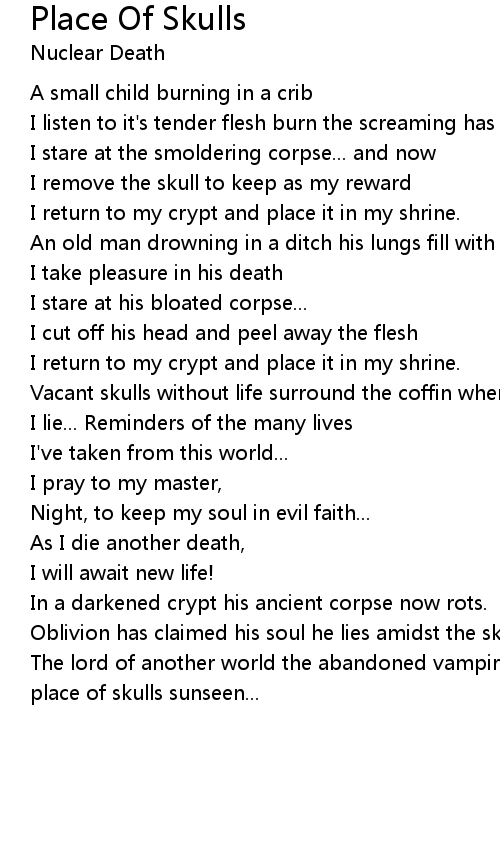 Vacant skulls without life surround the coffin where |