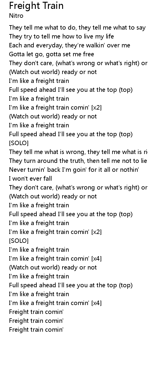 | I'm like a freight train comin' [x4] | |