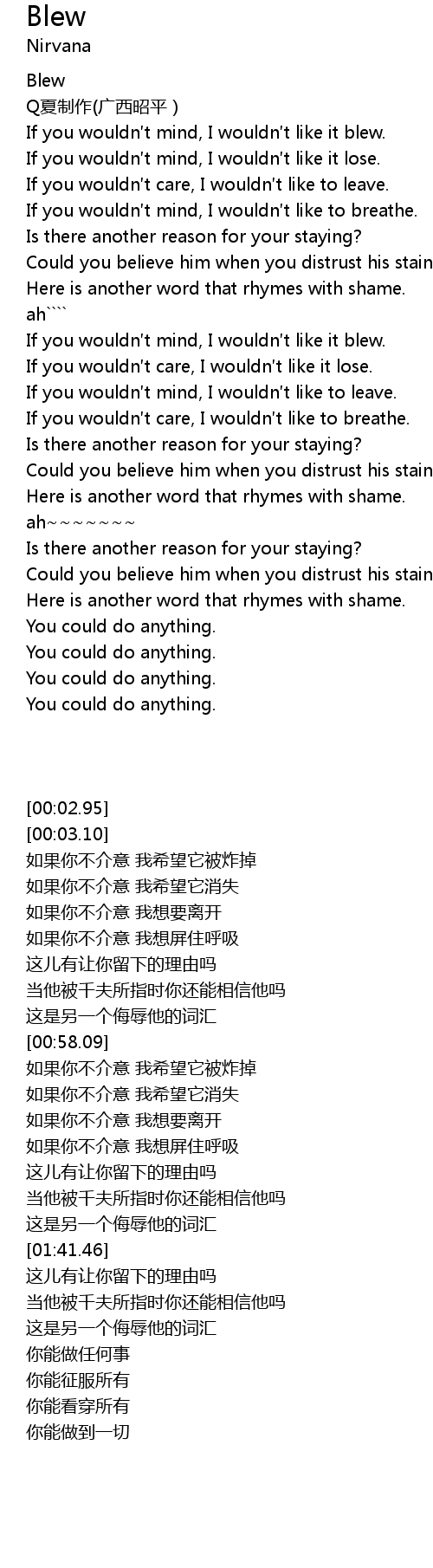 | [00:15.81] | If you wouldn t mind, I wouldn t like it blew. |