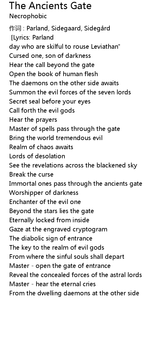 | Song | The Ancients Gate |