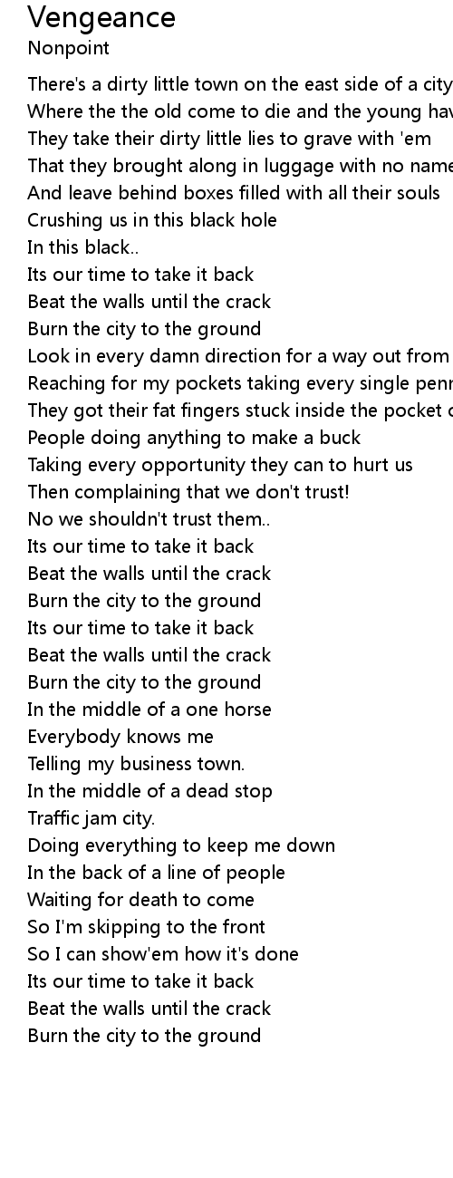 | Look in every damn direction for a way out from the wall of people closing in | |