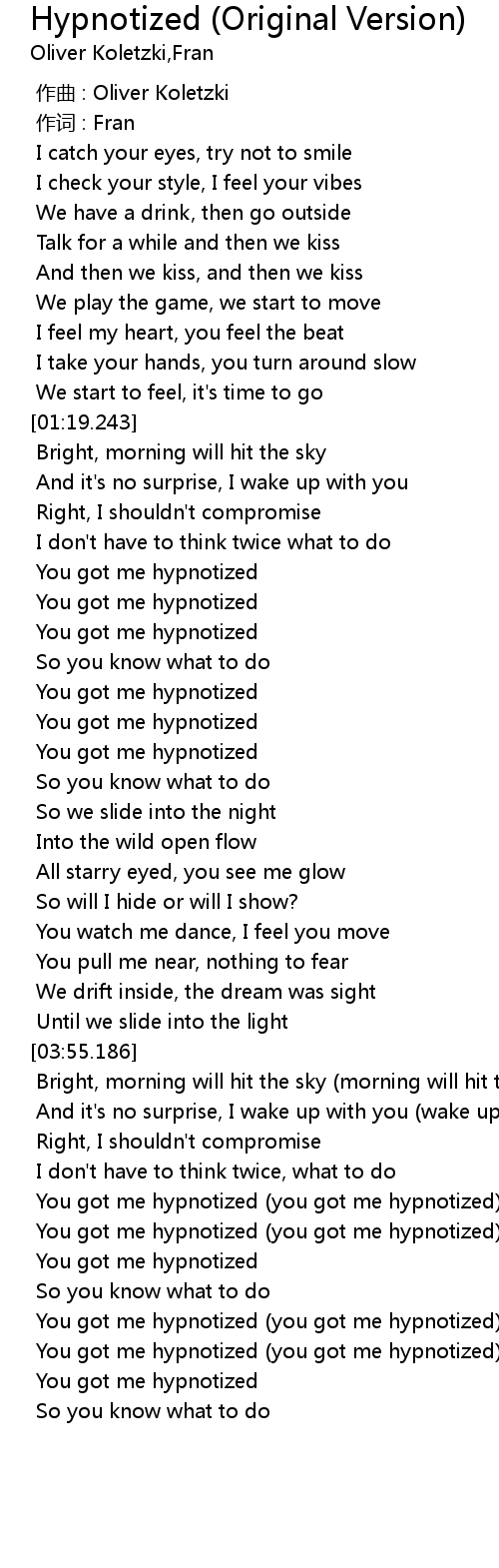 | [04:56.249] | You got me hypnotized you got me hypnotized |