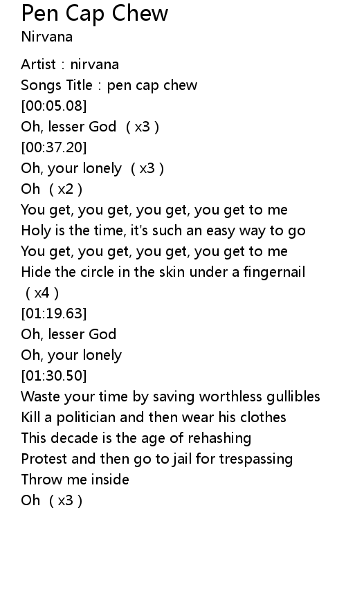 | [00:02.83] | Songs Title: pen cap chew |