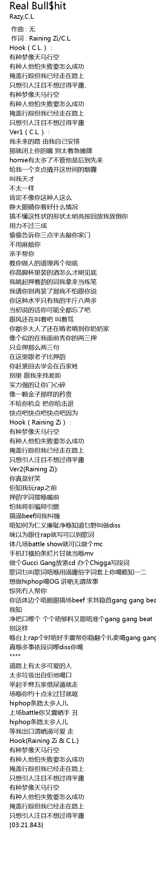 | [03:00.683] | Hook Raining Zi C. L. |