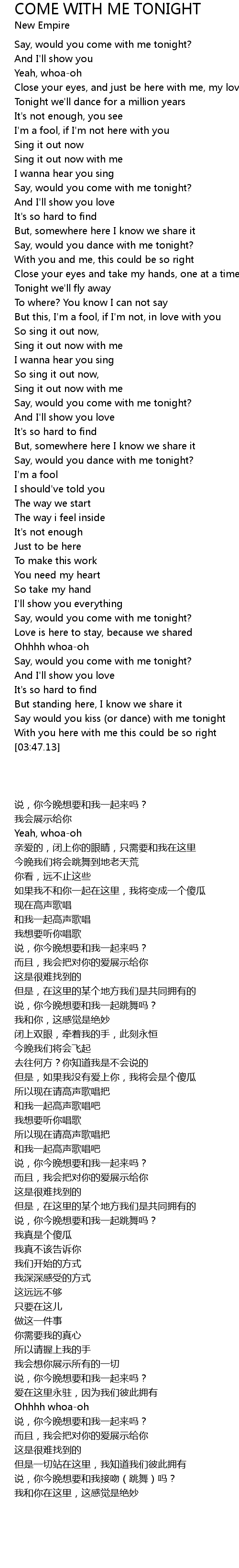 Say would you kiss (or dance) with me tonight |