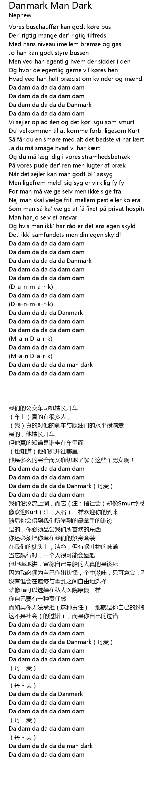 | Song | Danmark Man Dark |