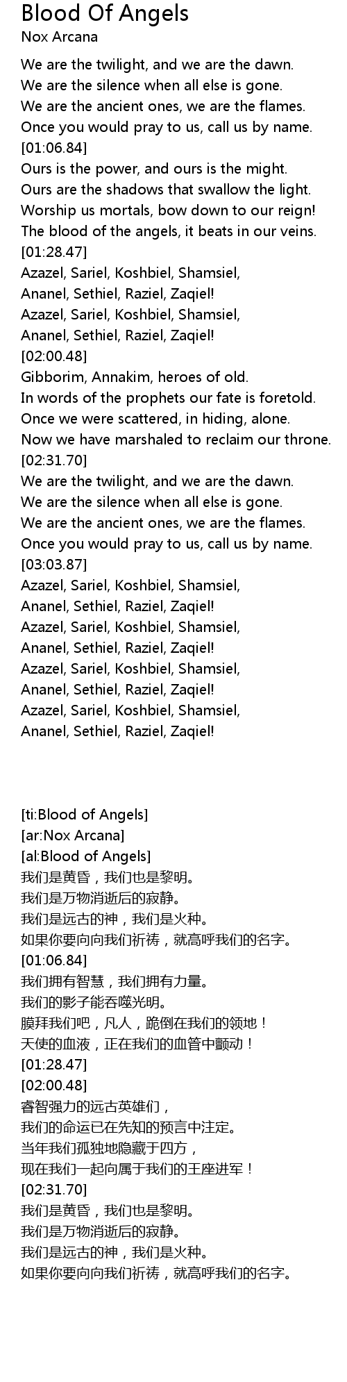 The blood of the angels, it beats in our veins. |