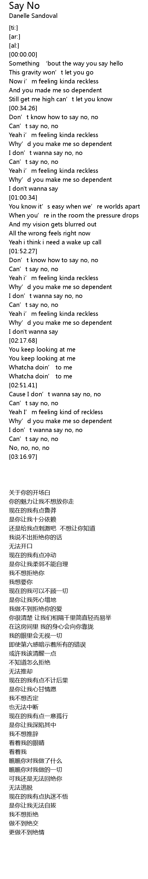 | [00:46.34] | I don' t wanna say no, no |