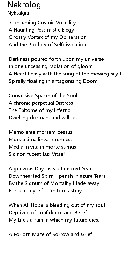 Darkness poured forth upon my universe |