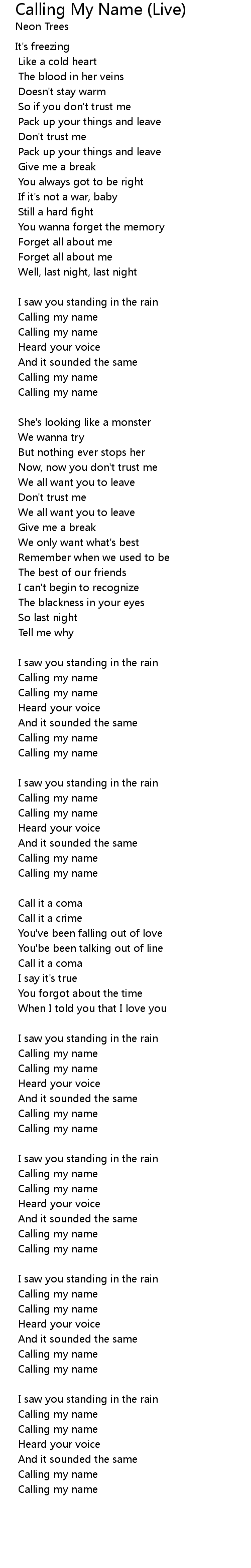 Calling my name |