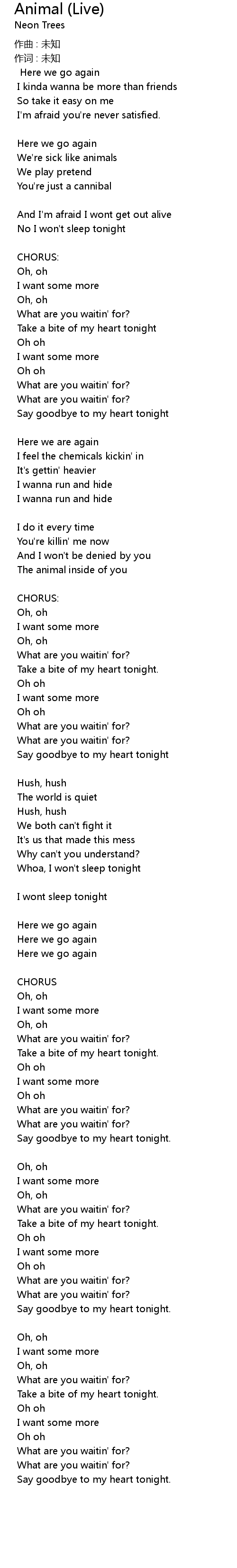 | Song | Animal (Live) |