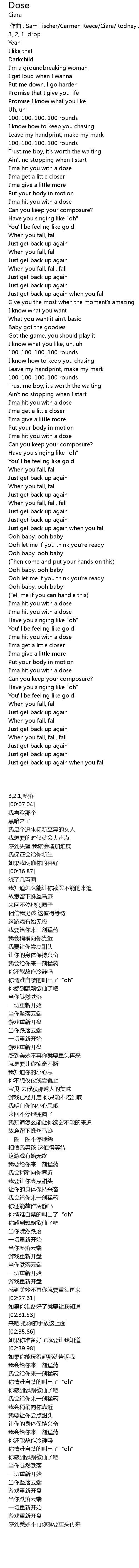| [00:00.000] | 作曲 : Sam Fischer/Carmen Reece/Ciara/Rodney Jerkins |