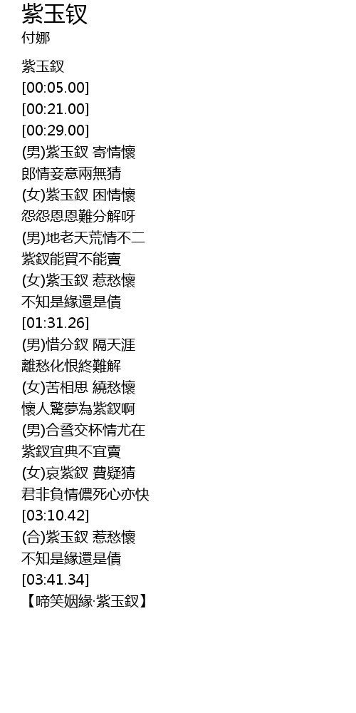 | [00:30.64] | (男)紫玉釵 寄情懷 |
