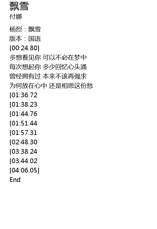 | [03:11.60][01:38.23][00:58.10] | 说情缘太浓 为何相聚太匆匆 |