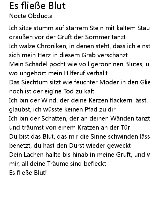 | Du bist das Blut, das mir die Sinne schwinden l sst, wenn es die Lippen mir benetzt, du hast den Durst wieder geweckt | |