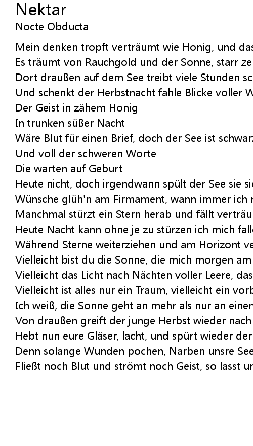 | Und schenkt der Herbstnacht fahle Blicke voller Weisheit ohne Sinn | |