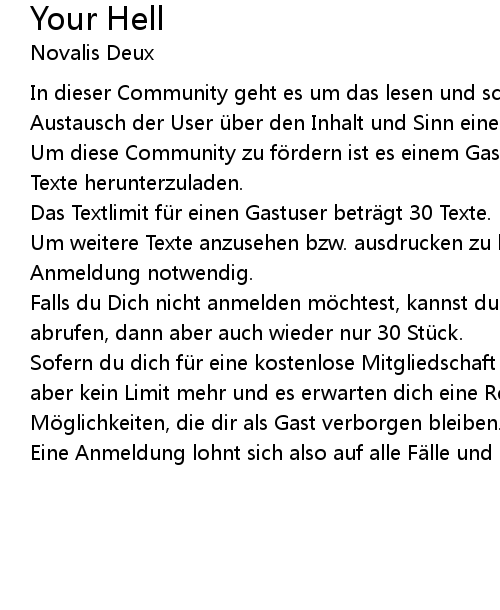 | Um diese Community zu f rdern ist es einem Gast nicht erlaubt, unbegrenzt viele Texte herunterzuladen. | |