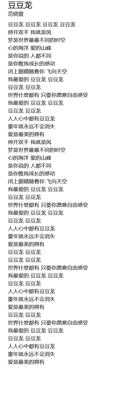 | [00:01.389] | 豆豆龙 豆豆龙 豆豆龙 豆豆龙 |