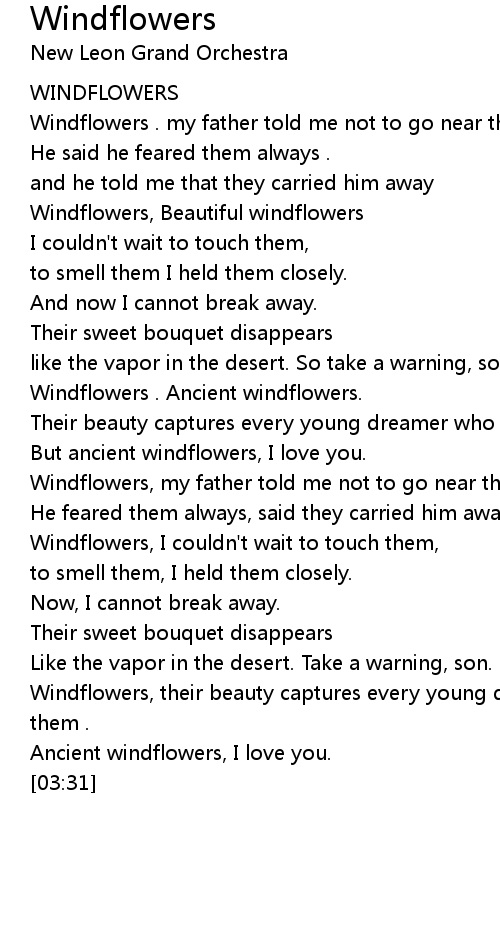 [03:00] Windflowers, their beauty captures every young dreamer who lingers near them .