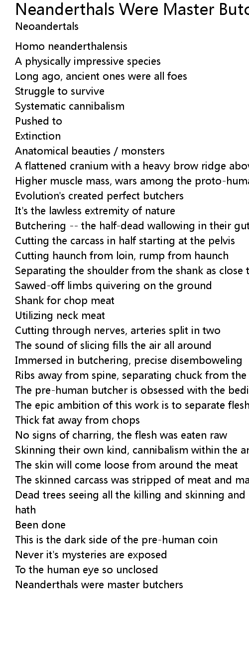 Neanderthals Were Master Butchers Lyrics
