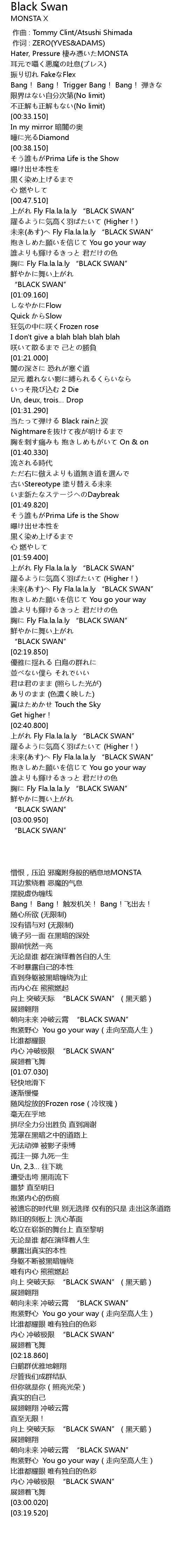 | [02:54.820] | 胸に Fly Fla.la.la.ly “BLACK SWAN” |