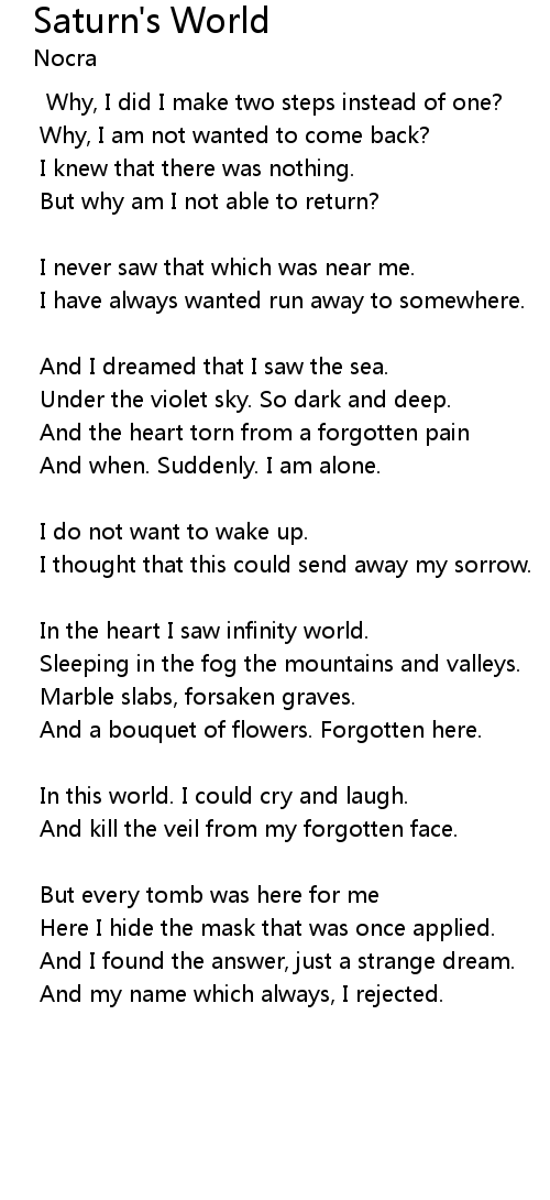 And I dreamed that I saw the sea. |